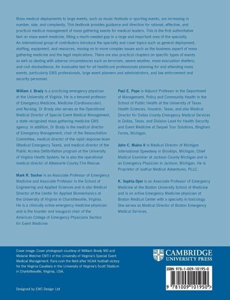 Mass medical deployments to large events, such as music festivals or sporting events, are increasing in number, size, and complexity. This textbook provides guidance and direction for rational, effective, and practical medical management of mass gathering events for medical leaders. This is the first authoritative text on mass event medicine, filling a much-needed gap in a large and important area of the specialty. An international group of contributors introduce the specialty and cover topics such as general deployment, staffing, equipment, and resources, moving on to more complex issues such…mehr