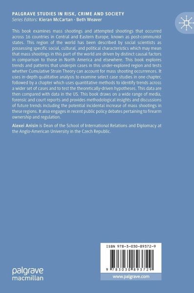 This book examines mass shootings and attempted shootings that occurred across 16 countries in Central and Eastern Europe, known as post-communist states. This region of the world has been described by social scientists as possessing specific social, cultural, and political characteristics which may mean that mass shootings in this part of the world are driven by distinct causal factors in comparison to those in North America and elsewhere. This book explores trends and patterns that underpin cases in this under-explored region and tests whether Cumulative Strain Theory can account for mass shooting occurrences. It uses in-depth qualitative analysis to examine select case studies in one chapter, followed by a chapter which uses quantitative methods to identify trends across a wider set of cases and to test the theoretically-driven hypotheses. This data is then compared with data in the US. This book draws on a wide range of media, forensic and court reports and provides methodological insights and discussions of future trends including the potential incidental increase of mass shootings in these regions. It also engages in recent public policy debates pertaining to firearm ownership and regulation.