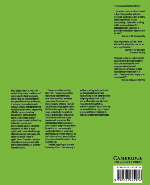 This book introduces the basis of mass spectrometry, covers the full range of commonly used techniques, and describes a wide variety of applications. The authors adopt an instructional approach and make use of recent examples to illustrate important points.