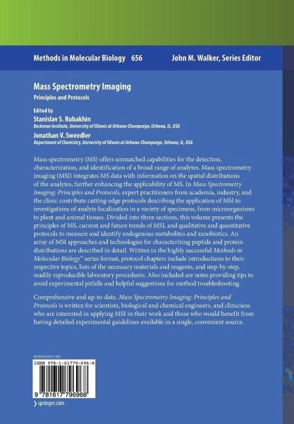 "The book aims to provide comprehensive background information on mass spectrometry imaging (MSI) technology ... . a monograph that has the merit of summarizing many protocols of great value for all scientists, engineers, and clinicians who are interested in applying MSI in their work. The book is clearly written and comprehensive, and has a good balance between theoretical descriptions and broad practical descriptions. Both established MSI researchers and those new to the field would benefit from this valuable source of methodological information." (José Manuel Costa-Fernández, Analytical and Bioanalytical Chemistry, Vol. 401, 2011)