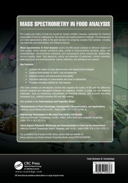 Mass Spectrometry in Food Analysis covers the MS-based analysis of different aspects of food quality, which include nutritional value, profile of macronutrients (proteins, lipids, and carbohydrates), micronutrients (vitamins), and nutraceutical active compounds. Additionally, sensory quality, flavor, food pigments, safety, and detection of pesticides, contact materials, veterinary drugs and pharmaceuticals, organic pollutants, and pathogens are covered.
