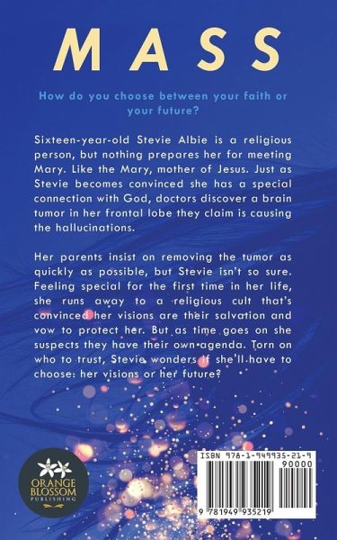 How do you choose between your faith and your future? Sixteen-year-old Stevie Albie is a religious person, but nothing prepares her for meeting Mary. Like the Mary, mother of Jesus. Just as Stevie becomes convinced she has a special connection with God, doctors discover a brain tumor in her frontal lobe they claim is causing the hallucinations. Her parents insist on removing the tumor as quickly as possible, but Stevie isn't so sure. Feeling special for the first time in her life, she runs away to a religious cult that's convinced her visions are their salvation and vow to protect her. But as time goes on she suspects they have their own agenda. Torn on who to trust, Stevie wonders if she'll have to choose: her visions or her future? **This version contains profanity and a reference to sex. Please order the Clean Version to get a copy without these.** Excerpt: The fear and panic that was tightening around my heart releases like fingers, one by one, until I feel a weightlessness in my chest. She is more beautiful than I remember, her skin smooth and a few shades darker than mine. Her hair enviously perfect, soft waves without a single strand out of place. This time she is alone, and I am glad it is just her and I again. "What is happening?" I ask her. She smiles. "I think you know."