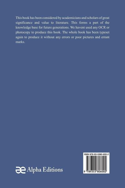 This book has been considered by academicians and scholars of great significance and value to literature. This forms a part of the knowledge base for future generations. We have represented this book in the same form as it was first published. Hence any marks seen are left intentionally to preserve its true nature.