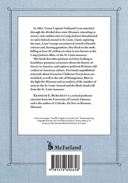 "In 1861, Union Brigadier General Nathaniel Lyon marched to St. Louis in the divided slave state Missouri to arrest a state militia unit at Camp Jackson that planned to raid a federal arsenal in St. Louis. After capturing the men, the Union troops encountered crowds of hostile citizens and, after a gun shot, they fired on the mob, killing at least 28 civilians in what is now known as the Camp Jackson affair or the St. Louis massacre. In this book, the author describes partisan activities leading to hostilities, promotes awareness about the history of slavery in America, and explains political divisions still evident in American culture. Included are previously unpublished materials about Governor Claiborne Jackson, the role of Montgomery Blair in the fight for Missouri, and analysis of the number of arms in the St. Louis Arsenal and unknown casualties of the St. Louis massacre."--