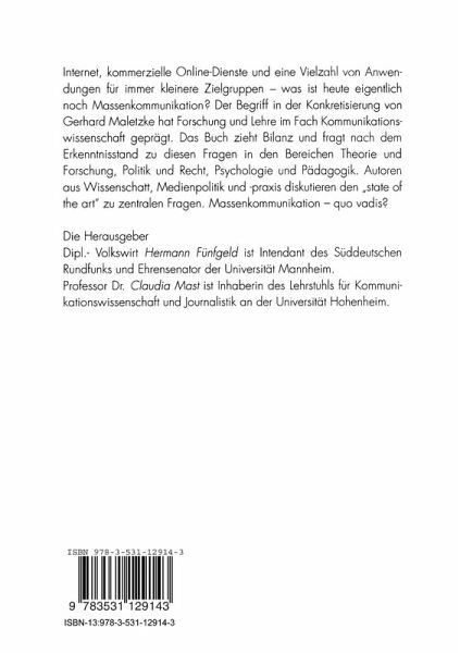 In diesem Band setzen sich Kommunikationswissenschaftler und Praktiker aus Politik und Medienunternehmen mit Massenkommunikation und ihren vielfältigen Aspekten auseinander.