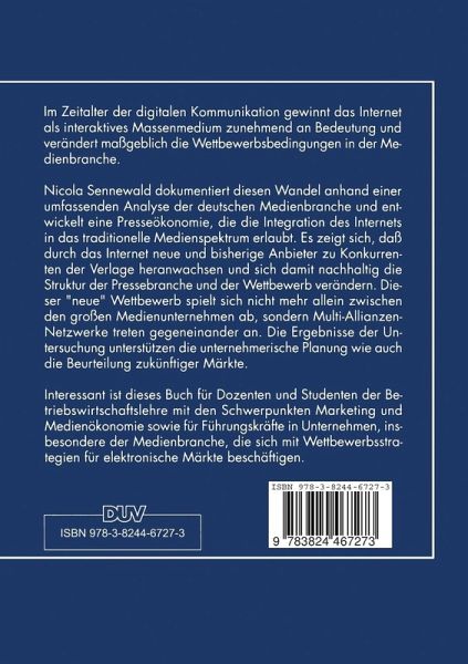 Geleitwort Der Diffusionsverlauf, den das Internet und die mit ihm zusammenhängenden Anwendungen und Dienste in den letzten Jahren genommen hat, sucht in der Geschichte der Ausbreitung von Informations- und Kommunikationstechniken wie wohl in der Geschichte der Technik insgesamt seinesgleichen: Geschwindigkeit und Wirkungsbreite dieser Technik, Durch dringung von Wirtschaft und Gesellschaft erscheinen beispiellos Und verändern das Gesicht vieler wirtschaftlicher Tätigkeiten, Funktionen, Prozesse und Branchen. Obwohl wir nach wie vor noch am Beginn der Entwicklung einer nachhaltigen Ausbreitung von internetähnlichen Kommunikations- und Informationspotentialen in Wirtschaft und Gesellschaft zu stehen scheinen, ist es auf grund der vorliegenden theoretischen Überlegungen und praktischen Erfahrungen bereits heute vertretbar, die Erscheinungsformen und Richtungen des ausgelösten Wandels exemplarisch zu untersuchen, um daraus ein tiefergehendes Verständnis fiir die sich abzeichnenden Entwicklungen zu gewinnen. Die Verfasserin der vorliegenden Arbeit hat sich die Aufgabe gestellt, die Rolle des Internet als Massenmedium zu analysieren und den Wettbewerbswandel zu erfassen, der von diesem Medium auf die klassischen massenmedialen Märkte ausgeht, wobei sie sich auf die Presse branche konzentriert. Dabei bedient sie sich sowohl theoretischer Hilfsmittel als auch empirischer Erfahrungen und Argumente, die sie in diversen Expertengesprächen in der Branche erhoben hat.