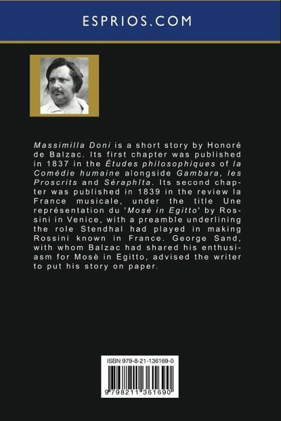 Massimilla Doni is a short story by Honoré de Balzac. Its first chapter was published in 1837 in the Études philosophiques of la Comédie humaine alongside Gambara, les Proscrits and Séraphîta. Its second chapter was published in 1839 in the review la France musicale, under the title Une représentation du 'Mosè in Egitto' by Rossini in Venice, with a preamble underlining the role Stendhal had played in making Rossini known in France. George Sand, with whom Balzac had shared his enthusiasm for Mosè in Egitto, advised the writer to put his story on paper.