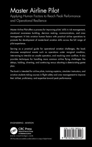 Master Airline Pilot offers a process for improving pilots' skills in risk management, situational awareness building, decision making, communications, and crew management. It links aviation human factors with practical airline operations to promote the development of master-level aviation skills across the full range of pilot experience. Serving as a practical guide for operational aviation challenges, the book discusses exceptional events such as operations under marginal condition, intervening to interdict an unsafe operation, and resolving crew conflicts. It also provides techniques for handling more common airline flying challenges like delays, holding, diverting, and continuing versus aborting a deteriorating game plan. The book is intended for airline pilots, training captains, simulator instructors, and aviation students taking courses in flight safety and crew management to improve their skillset, proficiency, and expertise toward peak performance.