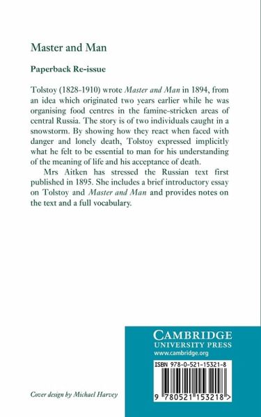 Tolstoy (1828-1910) wrote Master and Man in 1894, from an idea which originated two years earlier while he was organising food centres in the famine-stricken areas of central Russia. The story is of two individuals caught in a snowstorm. By showing how they react when faced with danger and lonely death, Tolstoy expressed implicitly what he felt to be essential to man for his understanding of the meaning of life and his acceptance of death. Mrs. Aitken has stressed the Russian text first published in 1895. She includes a brief introductory essay on Tolstoy and Master and Man and provides notes on the text and a full vocabulary.