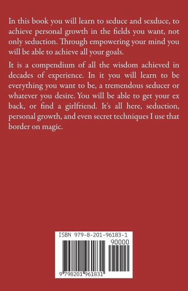 In this book you will learn to seduce and sexduce, to achieve personal growth in the fields you want, not only seduction. Through empowering your mind you will be able to achieve all your goals. It is a compendium of all the wisdom achieved in decades of experience. In it you will learn to be everything you want to be, a tremendous seducer or whatever you desire. You will be able to get your ex back, or find a girlfriend. It's all here, seduction, personal growth, and even secret techniques I use that border on magic. Thanks to the experience I have captured here you will learn how to: Seduce…mehr
