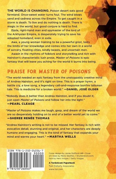 "This is a prayer hymn, a battle cry, a love song, a legendary call and response bonfire talisman tale. This is medicine for a broken world." -Daniel José Older Award-winning author Andrea Hairston weaves together African folktales and postcolonial literature into unforgettable fantasy in Master of Poisons NEW MATERIAL FOR A NEW EDITION! This trade paperback includes an extensive, conversational interview between the author and Daniel José Older! The world is changing. Poison desert eats good farmland. Once-sweet water turns foul. The wind blows sand and sadness across the Empire. To get caught in a storm is death. To live and do nothing is death. There is magic in the world, but good conjure is hard to find. Djola, righthand man and spymaster of the lord of the Arkhysian Empire, is desperately trying to save his adopted homeland, even in exile. Awa, a young woman training to be a powerful griot, tests the limits of her knowledge and comes into her own in a world of sorcery, floating cities, kindly beasts, and uncertain men. Awash in the rhythms of folklore and storytelling and rich with Hairston's characteristic lush prose, Master of Poisons is epic fantasy that will bleed your mind with its turns of phrase and leave you aching for the world it burns into being.