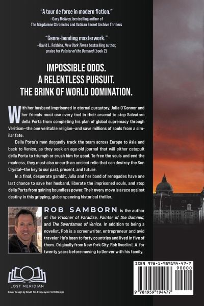 "Simply unputdownable" -Kiersten Modglin, bestselling author Impossible odds. A relentless pursuit. The brink of world domination. With her husband imprisoned in eternal purgatory, Julia O'Connor and her friends must use every tool in their arsenal to stop Salvatore della Porta from completing his plan of global supremacy through Veritism-the one veritable religion-and save millions of souls from a similar fate. Della Porta's men doggedly track the team across Europe to Asia and back to Venice, as they seek an age-old journal that will either catapult della Porta to triumph or crush him for good. To free the souls and end the madness, they must also unearth an ancient relic that can destroy the Sun Crystal-the key to our past, present, and future. In a final, desperate gambit, Julia and her band of renegades have one last chance to save her husband, liberate the imprisoned souls, and stop della Porta from gaining boundless power. Their every move is a race against destiny in this gripping, globe-spanning historical thriller. "A tour de force in modern fiction." -Gary McAvoy, bestselling author of The Magdalene Chronicles and Vatican Secret Archive Thrillers "The ultimate conspiracy thriller series." -Jayne Ann Krentz, New York Times bestselling author
