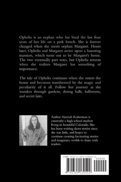 Ophelia is an orphan who has lived the last four years of her life on a park bench. Her life is forever changed when another young orphan named Margaret is lost and asks Ophelia to take her home. Hours later, Ophelia and Margaret arrive upon an elaborate and haunting mansion. Margaret thanks Ophelia for walking her home, but Ophelia wants nothing more than to stay the night in a warm house. The two eventually part ways, but Ophelia returns when she realizes Margaret still has her scarf. The tale of Ophelia continues when she enters the house and becomes transformed by the magic and peculiarity of it all. Follow her journey as she wanders through gardens, dining halls, ballrooms, and secret lairs.