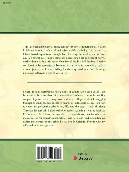 This has been an endeavor in life journey for me. Through the difficulties in life and in search of nutritional value and finally being able to survive, I have found aspirations through deep thinking. An evolvement of one-day (24 hours) cycle in my mind has necessitated the comfort of how to deal with me during this cycle. One day of life is a full lifetime. I had to sort it out in the hardest possible way. It is all here for you with ease. It is a small journey well worth taking for the very small price which brings numerous different prizes to you in life.