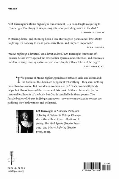 This book is full of the questions and uncomfortable uncertainties that grief and the body bring; it is also full of speakers who are determined, and then unsure. The female bodies of Master Suffering want power to survive; they want to control and to correct the suffering they witness and withstand. But wanting can lead to suffering, too, and make speakers like Burroughs ask: "Why / should I have wanted so much / as to threaten my being?"