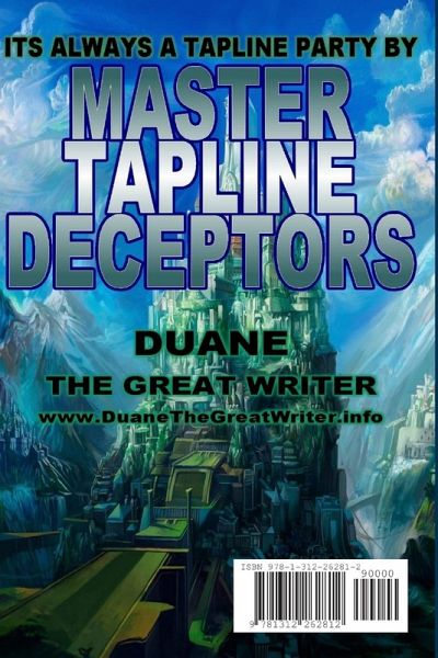 Hello, I am Duane The Great Writer, and I want to be one of the first and very few to commend Krone of the Krone Korporation, Deceptive TapLine Master JerOld and President Geeter, for the excellent job and undertaking they have taken on, and I do mean 'undertaking' like in a morgue. There really are very few on the earth who can come up with such a Business Plan of such Mass Proportional Deception as these three have done, along with the Paying MemberShrimps, because most people are just too honest with themselves and would not dare such an undertaking, and I do mean 'undertaking.' So, with this being said, and there is a whole lot more to be experienced and for you to learn with "An Adventure Like No Other,' get ready for The Ride of Your Life with, 'THE NUWAVIS REAL NOW!' If your have The Heart & Courage for RealTruth & RealFreedom, you will want to read every word of this NUBook. Have Fun Deciding Your NUJourney! www.DuaneTheGreatWriter.info