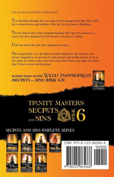 Can you move forward by looking back? Tess Hamilton thought she was ready for her arranged marriage. Her whole life is about history and tradition. After all, her last name is Hamilton. The fact that as part of her arranged marriage she'll get two spouses is a secret, but she's prepared for that. Ready to be part of a trinity. Until she meets the men she's supposed to marry. One dangerously sexy, the other just plain dangerous, the romance Tess always imagined is swept away by dark passion and deadly secrets. Even as she yields her body to these men she knows that to have any hope of a future they'll have to deal with their past.