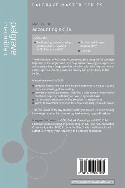 'Mastering Accounting Skills'is a clear explanatory text designed for beginners with no prior knowledge or experience of the discipline. The text contains many practical assignments that reflect the assessment requirements of the manual units for OCR (Oxford, Cambridge and RSA) Levels 1, 2 and 3 Book-keeping and Accounting qualifications. Step-by-step illustrations enable students to gain a real understanding of the principles and procedures of Book-keeping and Accounting.