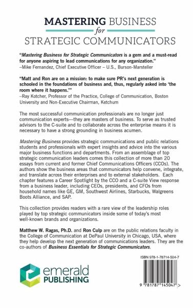 Mastering Business for Strategic Communicators provides strategic communication students and professionals with expert insights on the various major business functions and areas from an assemblage of top strategic communication leaders.
