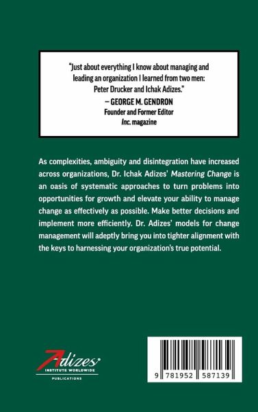 As complexities, ambiguity and disintegration have increased across organizations, Dr. Ichak Adizes's Mastering Change is an oasis of systematic approaches to turn problems into opportunities for growth and elevate your ability to manage change as effectively as possible. Make better decisions and implement more efficiently. Dr. Adizes's models for change management will adeptly bring you into tighter alignment with the keys to harnessing your organization's true potential.