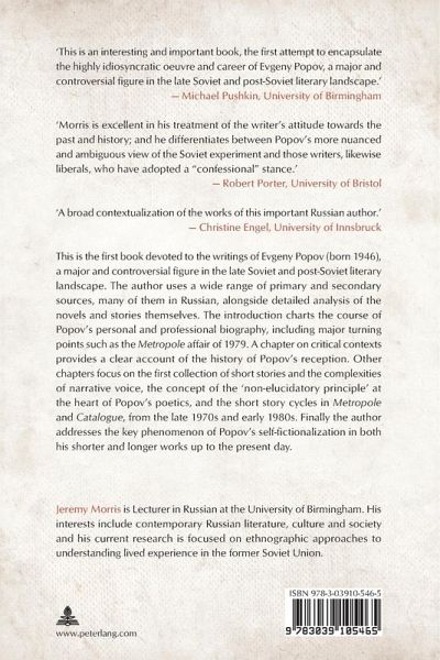«This is an interesting and important book, the first attempt to encapsulate the highly idiosyncratic oeuvre and career of Evgeny Popov, a major and controversial figure in the late Soviet and post-Soviet literary landscape.» (Michael Pushkin, University of Birmingham)