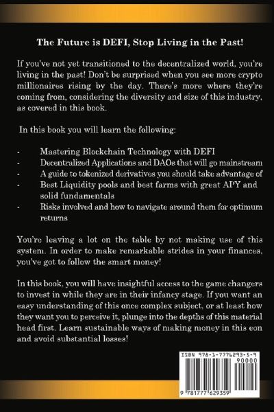 The Future is DEFI, Stop Living in the Past! Don't be surprised when you see more crypto defi millionaires rising by the day. If you've not yet transitioned to the decentralized finance world, you're missing the opportunity! You're leaving a lot of financial assets on the table by not making use of this decentralized finance defi 2022 investing guide. In order to make remarkable strides in your finances, you've got to follow the smart money which is the defi revolution! The traditional banking system is a fraud, and it has exploited you for a long time now. But woe unto them! For you have stumbled onto a gem. A disruptive beast and the biggest threat to centralized financial service providers! Two words, Decentralized Finance! Or DEFI in short. With this decentralized finance investment guide for beginners, Economics and Math of Token Engineering and Web 3.0, you will experience that accessing your money has never been this flexible! I mean, borderless, transparent, permissionless, interoperable, and user-friendliness! You work hard for your money, and what you choose to do with it, is your business. Mastering Decentralized Finance is a book that will not only give you basics on cryptocurrencies and their dynamics, it is your compass in your journey of how to gain full control of your money, how you save, invest, borrow and lend money, better investment opportunities & emerging DEFI categories and markets. "The Decentralization of Finance is really good for humanity and it's ultimately a win for each and every one of us. Because now that we can circumvent banks, exchanges and brokerage companies by using smart contracts on the blockchain.. every person, every family, and every business will experience more liberty, freedom, opportunities, abundance, power, and more wealth." - Hendrith Vanlon Smith Jr, CEO of Mayflower-Plymouth Through the informative investors' guide to this digital gold, you will get full guidance on the best yield farms to profit from, on becoming liquidity providers, access to flash loans with no credit score or any form of identification. In this book you will learn the following: - Mastering Blockchain Technology with DEFI - Decentralized Applications and DAOs that will go mainstream - A guide to tokenized derivatives you should take advantage of - Best Liquidity pools and best farms with great APY and solid fundamentals - Risks involved and how to navigate around them for optimum returns Not only that, but you will also know the trending financial projects with great potential, such as the reason behind the NFT craze as well as the dynamic future presented by the Metaverse and the Web 3.0 developments. If you want an easy understanding of this once complex subject, or at least how they want you to perceive it, plunge into the depths of this material head first. Learn sustainable ways of making money in this eon and avoid substantial losses. So, what are you waiting for? Grab your Copy Now!