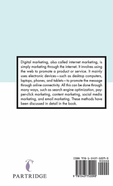Digital marketing, also called internet marketing, is simply marketing through the internet. It involves using the web to promote a product or service. It mainly uses electronic devices-such as desktop computers, laptops, phones, and tablets-to promote the message through online connectivity. All this can be done through many ways, such as search engine optimization, pay-per-click marketing, content marketing, social media marketing, and email marketing. These methods have been discussed in detail in the book.
