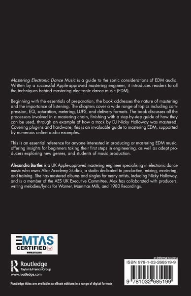 Mastering Electronic Dance Music is a guide to the sonic considerations of EDM audio. Written by a successful Apple-approved mastering engineer, it introduces readers to all the techniques behind mastering electronic dance music (EDM).
