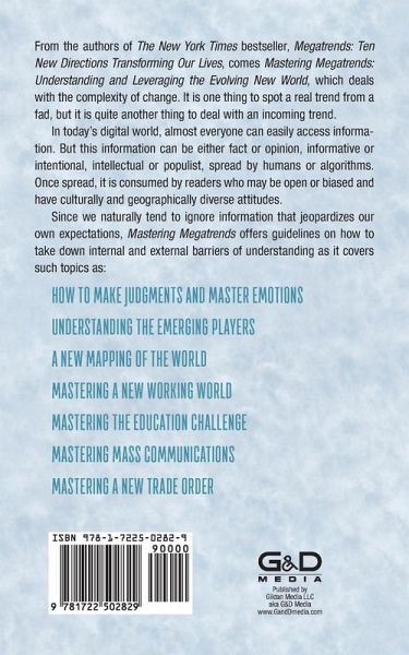 Since we naturally tend to ignore information that jeopardizes our own expectations, Mastering Megatrends offers guidelines on how to take down internal and external barriers of understanding as it covers such topics as: * HOW TO MAKE JUDGMENTS AND MASTER EMOTIONS * UNDERSTANDING THE EMERGING PLAYERS * A NEW MAPPING OF THE WORLD * MASTERING A NEW WORKING WORLD * MASTERING THE EDUCATION CHALLENGE * MASTERING MASS COMMUNICATIONS * MASTERING A NEW TRADE ORDER