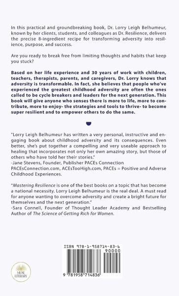 In this practical and groundbreaking book, Dr. Lorry Leigh Belhumeur, known by her clients, students, and colleagues as Dr. Resilience, delivers the precise 8-ingredient recipe for transforming adversity into resilience, purpose, and success. Are you ready to break free from limiting thoughts and habits that keep you stuck? Based on her life experience and 30 years of work with children, teachers, therapists, parents, and caregivers, Dr. Lorry knows that adversity is transformable. In fact, she believes that people who've experienced the greatest childhood adversity are often the ones called to be cycle breakers and leaders for the next generation. This book will give anyone who senses there is more to life, more to contribute, more to enjoy- the strategies and tools to thrive- to become super resilient and to empower others to do the same. Dr. Lorry Leigh Belhumeur, known by her clients, students, and colleagues as Dr. Resilience, delivers the precise 8-ingredient recipe for transforming adversity into resilience, purpose, and success.