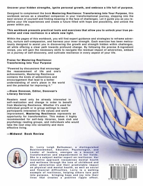 Uncover your hidden strengths, ignite personal growth, and embrace a life full of purpose. Designed to complement the book Mastering Resilience: Transforming Into Your Purpose, this workbook serves as a steadfast companion in your transformational journey, stepping into the best version of yourself and finding meaning in the face of challenges. Let it guide you as you redefine your life experiences and create a future filled with hope and possibility, and unlock the power within you. This workbook presents practical tools and exercises that allow you to unlock your true potential and view resilience in a whole new light. Within the pages of this workbook, you will find expert guidance and strategies to reframe adversity, nurture self-compassion, and harness your inner strength. Each exercise has been meticulously designed to assist you in discovering the growth and strength hidden within challenges, all while offering a clear path towards profound change. By following the precise 8-ingredient recipe, you will gain the necessary skills to navigate the residual impact of adversities, embark on a journey of self-discovery, and cultivate resilience in every aspect of your life.