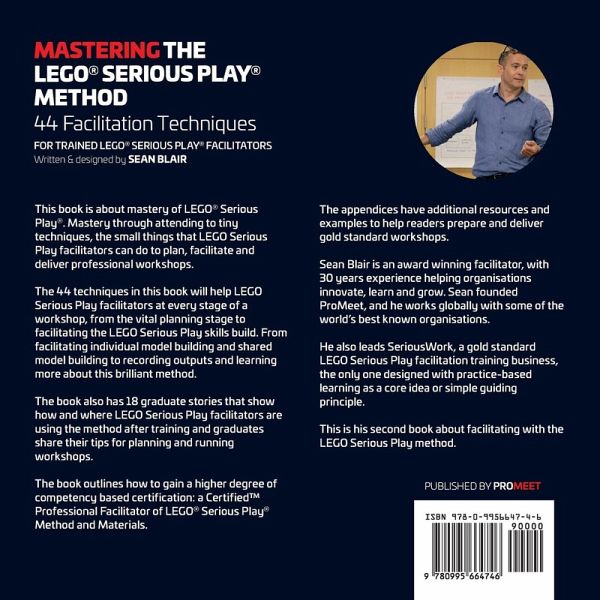 This book is about mastery of LEGO® Serious Play®. Mastery through attending to tiny techniques, the small things that LEGO Serious Play facilitators can do to plan, facilitate and deliver professional workshops. The 44 techniques in this book will help LEGO Serious Play facilitators at every stage of a workshop, from the vital planning stage to facilitating the LEGO Serious Play skills build. From facilitating individual model building and shared model building to recording outputs and learning more about this brilliant method. The book also has 18 graduate stories that show how and where LEGO Serious Play facilitators are using the method after training and graduates share their tips for planning and running workshops. The book outlines how to gain a higher degree of competency based certification: a CertifiedTM Professional Facilitator of LEGO® Serious Play® Method and Materials. The appendices have additional resources and examples to help readers prepare and deliver gold standard workshops. Sean Blair is an award winning facilitator, with 30 years experience helping organisations innovate, learn and grow. Sean founded ProMeet, and he works globally with some of the world’s best known organisations. He also leads SeriousWork, a gold standard LEGO Serious Play facilitation training business and the only one focused on practice-based learning. This is his second book about facilitating with the LEGO Serious Play method. This is his second book about facilitating with the LEGO Serious Play method.
