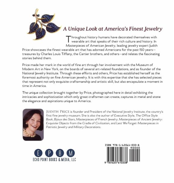 Throughout history humans have decorated themselves with wearable art that speaks of their rich culture and history. In Masterpieces of American Jewelry, leading jewelry expert Judith Price showcases the finest wearable art that has adorned Americans for the past 150 years-treasures.by Charles Louis Tiffany, the Cartier brothers, and others-and relates the fascinating stories behind them. Price made her mark in the world of fine art through her involvement with the Museum of Modern Art in New York, on the boards of several art-related foundations, and as founder of the National Jewelry. Through these efforts and others, Price has established herself as the foremost authority on fine American jewelry. It is with this expertise that she has selected pieces that represent not only exquisite craftsmanship and artistic skill, but also encapsulate a moment in time in America. The unique collection brought together by Price, photographed here in detail exhibiting the intricacies and sophistication which only great craftsmen can create, captures in metal and stone the elegance and aspirations unique to America. Readers interested in related titles from Judith Price will also want to see: Masterpieces of Ancient Jewelry (ISBN: 1635610346), Masterpieces of French Jewelry (ISBN: 1635610362).