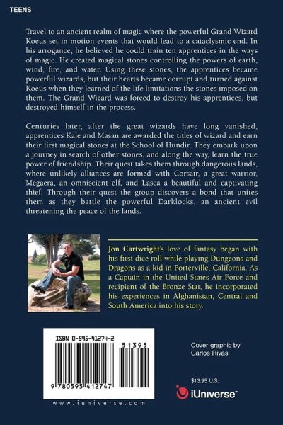 Travel to an ancient realm of magic where the powerful Grand Wizard Koeus set in motion events that would lead to a cataclysmic end. In his arrogance, he believed he could train ten apprentices in the ways of magic. He created magical stones controlling the powers of earth, wind, fire, and water. Using these stones, the apprentices became powerful wizards, but their hearts became corrupt and turned against Koeus when they learned of the life limitations the stones imposed on them. The Grand Wizard was forced to destroy his apprentices, but destroyed himself in the process. Centuries later, after the great wizards have long vanished, apprentices Kale and Masan are awarded the titles of wizard and earn their first magical stones at the School of Hundir. They embark upon a journey in search of other stones, and along the way, learn the true power of friendship. Their quest takes them through dangerous lands, where unlikely alliances are formed with Corsair, a great warrior, Megaera, an omniscient elf, and Lasca a beautiful and captivating thief. Through their quest the group discovers a bond that unites them as they battle the powerful Darklocks, an ancient evil threatening the peace of the lands.