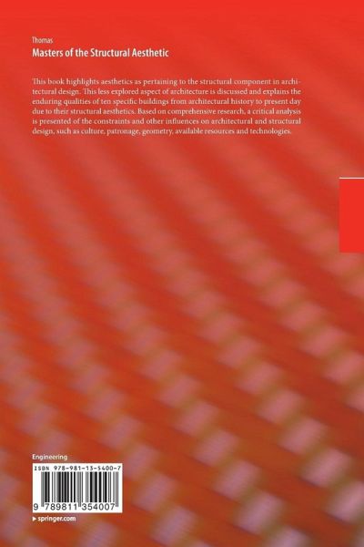 This book highlights aesthetics as pertaining to the structural component in architectural design. This less explored aspect of architecture is discussed and explains the enduring qualities of ten specific buildings from architectural history to present day due to their structural aesthetics. Based on comprehensive research, a critical analysis is presented of the constraints and other influences on architectural and structural design, such as culture, patronage, geometry, available resources and technologies.