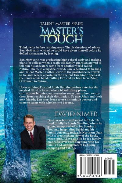 Think twice before running away! That is the piece of advice Ean McMurrin wished he could have given himself before he defied his parents by leaving Master's Touch is an action adventure, fantasy fiction novel filled with magical dragons, leprechauns, shapeshifters, and fairies. In this mystical world, Ean is destined to be king and Talent Master, if he can rescue the Irish teen, Adair O'Conner, and survive blood thirsty plants, carnivorous bunnies, and assassins determined to stop them from reaching their destination. To save Adair and their new friends, Ean must learn to use his dragon powers and come to terms with who he is to become. Master's Touch is a coming of age story that blends magic, mystical creatures and mystery into reality. It's the first novel in the Talent Master Series.