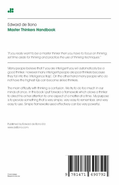 'Many people believe that if you are intelligent you will automatically be a good thinker. However many intelligent people are poor thinkers because they fall into the 'intelligence trap'. On the other hand many people who do not have the highest IQs can become skilled thinkers. The main difficulty with thinking is confusion. We try to do too much in our minds at once. In this book I put forward a framework which allows a thinker to direct his or her attention to one aspect of a matter at a time. My purpose is to provide something that is very simple, very easy to remember, and very easy to use. Simple frameworks used effectively can be very powerful.