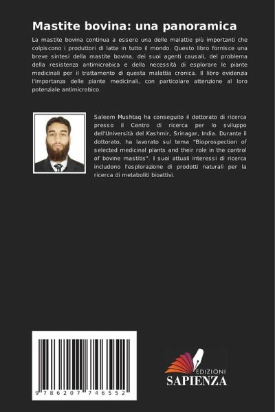 La mastite bovina continua a essere una delle malattie più importanti che colpiscono i produttori di latte in tutto il mondo. Questo libro fornisce una breve sintesi della mastite bovina, dei suoi agenti causali, del problema della resistenza antimicrobica e della necessità di esplorare le piante medicinali per il trattamento di questa malattia cronica. Il libro evidenzia l'importanza delle piante medicinali, con particolare attenzione al loro potenziale antimicrobico.