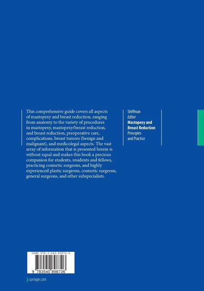 This comprehensive guide covers all aspects of mastopexy and breast reduction, ranging from anatomy to the variety of procedures in mastopexy, mastopexy/breast reduction, and breast reduction, preoperative care, complications, breast tumors (benign and malignant), and medicolegal aspects.
