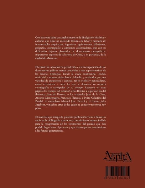 Con esta obra parte un amplio proyecto de divulgación histórica y cultural, que rinde un merecido tributo a la labor y memoria de innumerables arquitectos, ingenieros, agrimensores, dibujantes, geógrafos, cosmógrafos y anónimos colaboradores, que con su dedicación dejaron plasmados en documentos cartográficos, importantes aspectos de la historia de Cuba, y en particular, de la ciudad de Matanzas. El criterio de selección ha prevalecido en la incorporación de los documentos gráficos menos conocidos y más representativos de las diversas tipologías. Desde la escala continental, insular, territorial y arquitectónica hasta el detalle, y realizados por una variedad de arquitectos y copistas, tanto criollos y peninsulares, como extranjeros -entre los que se destacan los mejores cosmógrafos y cartógrafos de su tiempo. Aparecen en estas páginas los trabajos del cubano Carlos Benítez a la par con los del flamenco Juan de Herrera, o los españoles Juan de la Cosa, Antonio Montenegro, Francisco Plazaola, y Pedro Celestino del Pandal, el venezolano Manuel José Carrerá y el francés Jules Sagebien, y muchos otros de los cuales se conoce y reconoce hoy poco. El material que integra la presente publicación viene a llenar un vacío en la bibliografía matancera, conocimiento imprescindible para la recuperación de los testimonios del pasado que han podido llegar hasta el presente y que tienen que ser transmitidos a las futuras generaciones.