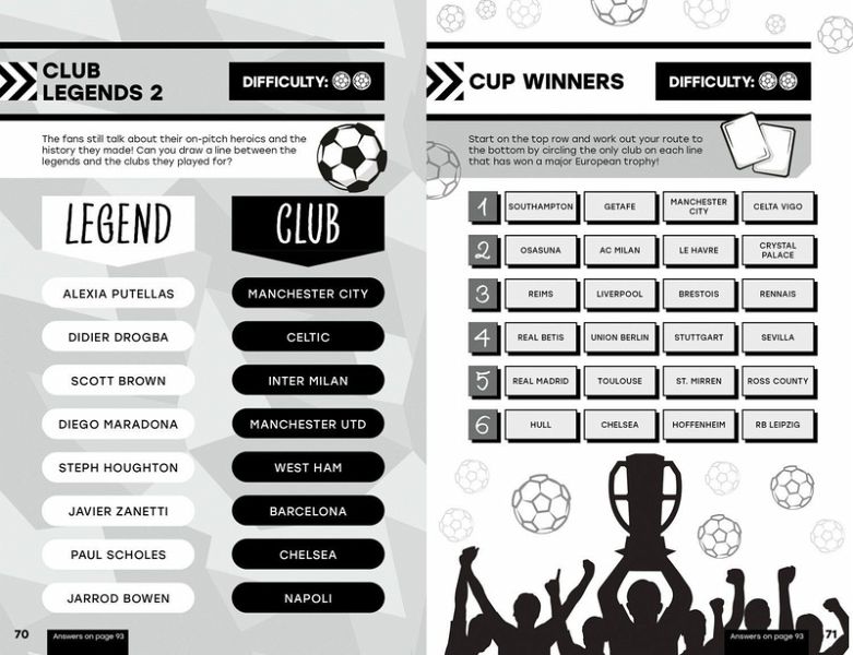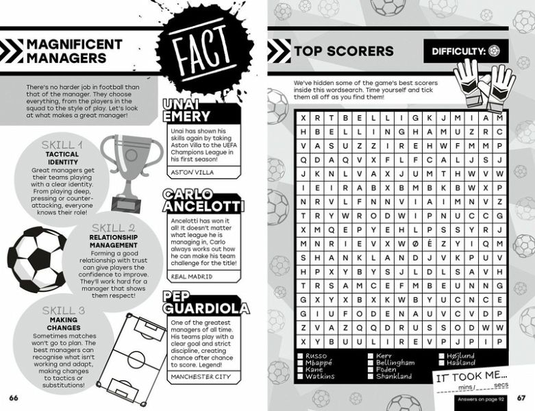 Discover everything there is to know about your favourite football heroes and clubs, then take on an action-packed mix of puzzles, quizzes and mega trivia!