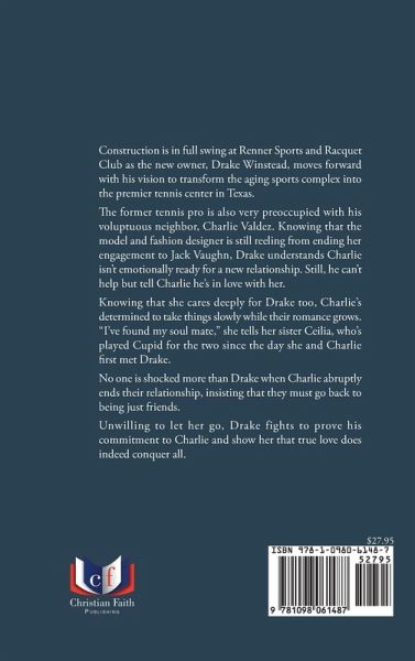Construction is in full swing at Renner Sports and Racquet Club as the new owner, Drake Winstead, moves forward with his vision to transform the aging sports complex into the premier tennis center in Texas. The former tennis pro is also very preoccupied with his voluptuous neighbor, Charlie Valdez. Knowing that the model and fashion designer is still reeling from ending her engagement to Jack Vaughn, Drake understands Charlie isn't emotionally ready for a new relationship. Still, he can't help but tell Charlie he's in love with her. Knowing that she cares deeply for Drake too, Charlie's determined to take things slowly while their romance grows. "I've found my soul mate," she tells her sister Ceilia, who's played Cupid for the two since the day she and Charlie first met Drake. No one is shocked more than Drake when Charlie abruptly ends their relationship, insisting that they must go back to being just friends. Unwilling to let her go, Drake fights to prove his commitment to Charlie and show her that true love does indeed conquer all.