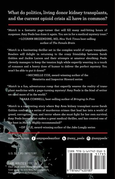 How does a San Francisco transplant nurse who never takes drugs die of an opioid overdose in Miami? How does an eight-year-old boy avoid the ravages of dialysis and get a kidney transplant fast, and what does a high-ranking politician have to do with it? In Match these stories weave together into one suspenseful and sometimes humorous tale.