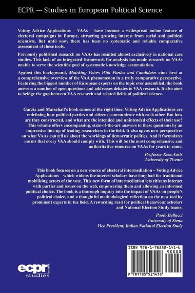 Voting Advice Applications - VAAs - have become a widespread online feature of electoral campaigns in Europe, attracting growing interest from social and political scientists. But until now, there has been no systematic and reliable comparative assessment of these tools. Previously published research on VAAs has resulted almost exclusively in national case studies. This lack of an integrated framework for analysis has made research on VAAs unable to serve the scientific goal of systematic knowledge accumulation. Against this background, Matching Voters With Parties and Candidates aims first at a comprehensive overview of the VAA phenomenon in a truly comparative perspective. Featuring the biggest number of European experts on the topic ever assembled, the book answers a number of open questions and addresses debates in VAA research. It also aims to bridge the gap between VAA research and related fields of political science.