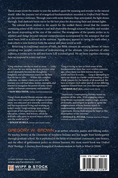 These essays invite the reader to join the author's quest for meaning and wonder in the natural world. After the journey out of evangelical fundamentalism recorded in Unified Field Theology, the journey continues. Through years with more darkness than anticipated, the light shines through. And darkness turns out to be the best place for discerning faint and distant lights. The natural forces studied in the search for the unified theory reveal that the creative sustaining power of the universe is real and observable through science. Humility and wonder are found responding to the size of the cosmos. The strangeness of the quanta invites us to mystery and things beyond rational comprehension accompanied by the assurance that our most basic level is as eternal as the universe. Significance appears in caring for each other, a trait which is now found in both the animal and plant world as well. Returning to traditional sources of faith, the Bible remains an amazing library of voices revealing one people's evolution of understanding of the ultimate. Like practices of other cultures, it invites us to be still and know. Life is indeed good. We are here, together, choosing how we respond to a very real God.