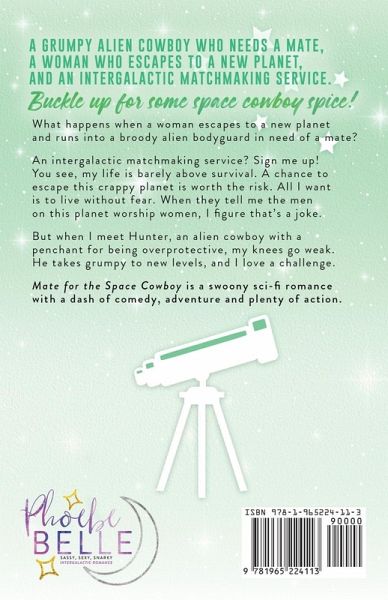 A grumpy alien cowboy in need of a mate. A woman desperate for a fresh start. An intergalactic matchmaking service with a wild reputation. Buckle up-this space cowboy romance is about to take off! Life on my planet? Miserable. Survival? Barely. So when I get the chance to sign up for an intergalactic matchmaking program, I don't hesitate. A planet where men worship women? Sounds too good to be true. Then I meet Hunter. A broody, overprotective alien cowboy who takes grumpy to a whole new level. He's all muscle, growls, and scowls, but I've never been one to back down from a challenge. Taming this space cowboy? It might just be the adventure of a lifetime. Mate for the Space Cowboy is a swoony sci-fi romance packed with adventure and a dash of comedy!