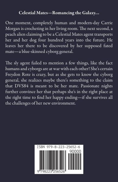 Celestial Mates-Romancing the Galaxy... One moment, completely human and modern-day Carrie Morgan is crocheting in her living room. The next second, a peach alien claiming to be a Celestial Mates agent transports her and her dog four hundred years into the future. He leaves her there to be discovered by her supposed fated mate-a blue-skinned cyborg general. The sly agent failed to mention a few things, like the fact humans and cyborgs are at war with each other! She's certain Freydon Rote is crazy, but as she gets to know the cyborg general, she realizes maybe there's something to the claim that DVS84 is meant to be her mate. Passionate nights further convince her that perhaps she's in the right place at the right time to find her happy ending-if she survives all the challenges of her new environment. Can a human woman find true love with a cyborg general fighting against her species? Find out in this latest installment in the Celestial Mates (and first in the Cybernetic Hearts) series, brought to you by USA Today bestselling author Kit Tunstall, writing as Aurelia Skye.