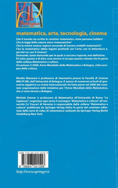 Negli ultimi anni le immagini hanno giocato un ruolo molto importante in molti settori dell'attività umana. Anche in matematica l'uso di strumenti informatici con elevate capacità grafiche si sta diffondendo sempre di più. Il volume è il risultato del congresso che si è tenuto a Bologna nell'ottobre 2000 che ha voluto riunire alcuni esperti nell'uso delle immagini. Sia coloro che realizzano gli strumenti tecnici che consentono poi di gestire la computer graphics, sia coloro che le immagini le utilizzano. Non solo quindi matematica, tecnica e computer graphics, ma anche i legami con l'arte e soprattutto con il cinema. Una larga parte del libro è dedicata infatti ai rapporti tra matematica e cinema, con articoli di registi, attori, sceneggiatori e matematici che hanno partecipato alla rassegna di film che si è tenuta a Bologna per due mesi.