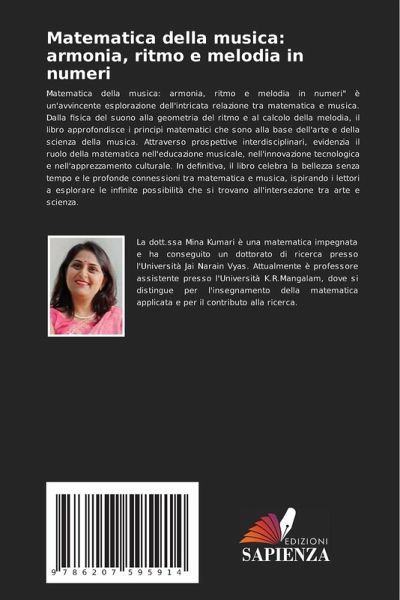 Matematica della musica: armonia, ritmo e melodia in numeri" è un'avvincente esplorazione dell'intricata relazione tra matematica e musica. Dalla fisica del suono alla geometria del ritmo e al calcolo della melodia, il libro approfondisce i principi matematici che sono alla base dell'arte e della scienza della musica. Attraverso prospettive interdisciplinari, evidenzia il ruolo della matematica nell'educazione musicale, nell'innovazione tecnologica e nell'apprezzamento culturale. In definitiva, il libro celebra la bellezza senza tempo e le profonde connessioni tra matematica e musica, ispirando i lettori a esplorare le infinite possibilità che si trovano all'intersezione tra arte e scienza.