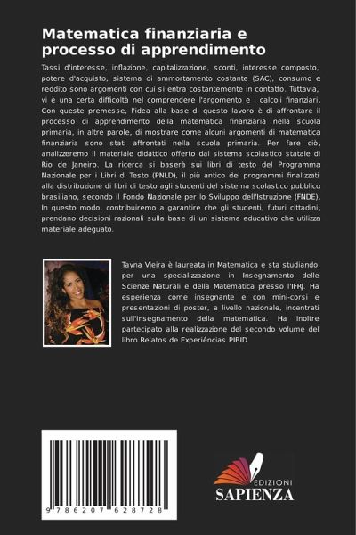Tassi d'interesse, inflazione, capitalizzazione, sconti, interesse composto, potere d'acquisto, sistema di ammortamento costante (SAC), consumo e reddito sono argomenti con cui si entra costantemente in contatto. Tuttavia, vi è una certa difficoltà nel comprendere l'argomento e i calcoli finanziari. Con queste premesse, l'idea alla base di questo lavoro è di affrontare il processo di apprendimento della matematica finanziaria nella scuola primaria, in altre parole, di mostrare come alcuni argomenti di matematica finanziaria sono stati affrontati nella scuola primaria. Per fare ciò, analizzeremo il materiale didattico offerto dal sistema scolastico statale di Rio de Janeiro. La ricerca si baserà sui libri di testo del Programma Nazionale per i Libri di Testo (PNLD), il più antico dei programmi finalizzati alla distribuzione di libri di testo agli studenti del sistema scolastico pubblico brasiliano, secondo il Fondo Nazionale per lo Sviluppo dell'Istruzione (FNDE). In questo modo, contribuiremo a garantire che gli studenti, futuri cittadini, prendano decisioni razionali sulla base di un sistema educativo che utilizza materiale adeguato.